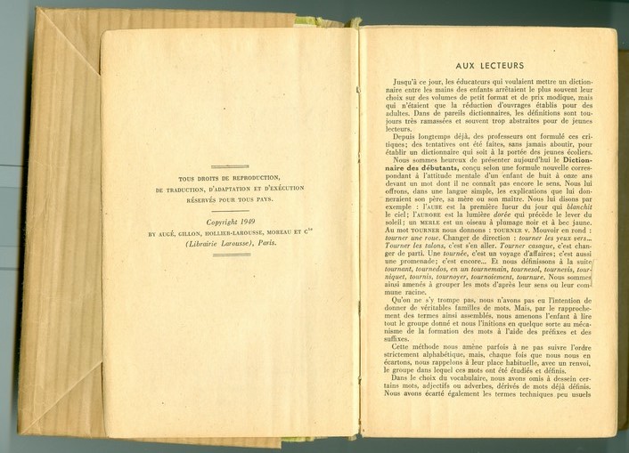 Dictionary in French; Larousse pour débutants; 1949; a piece of collection in itself. --- See the section Shipping & returns.